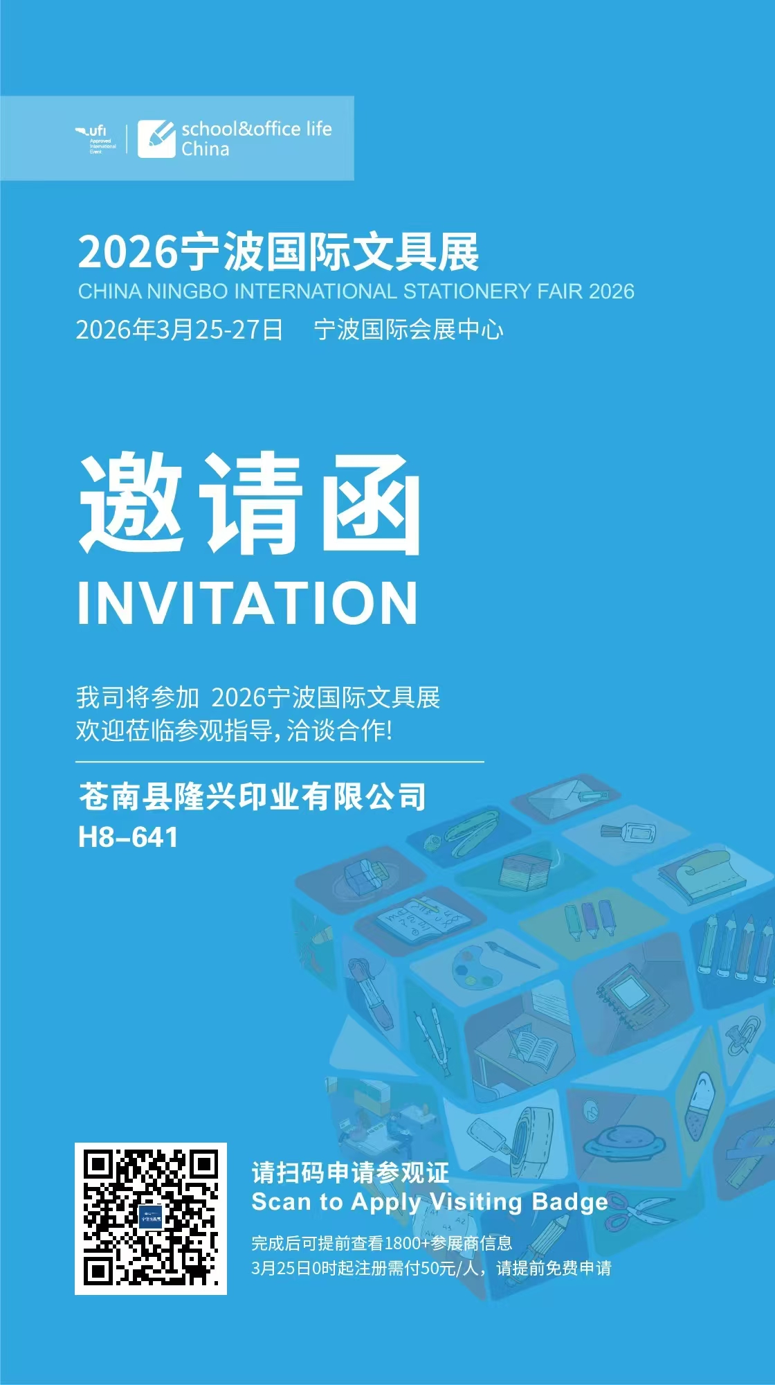 Компания Longxing Printing Co., Ltd. округа Цаннань рада сообщить о своем участии в 2026 Китайская международная ярмарка канцелярских товаров в Нинбо , происходящий от 25–27 марта 2026 г. , в Международный конференц-центр Нинбо .